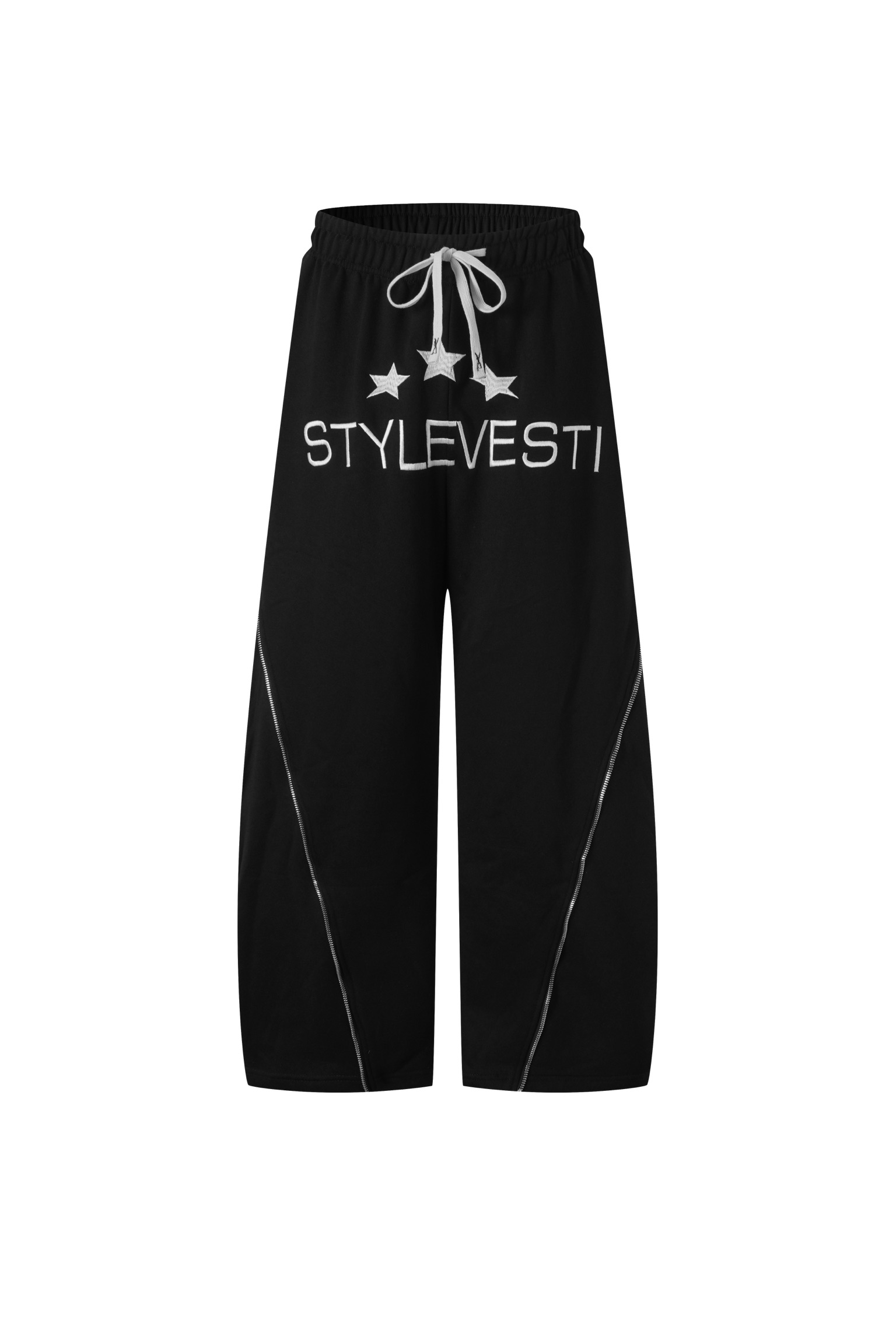 Discover Vision Oversized Pant; oversized thick-cotton pants with embroidered STYLEVESTI + 3 stars, stitched SV icon, dual-leg zippers for adjustable width, and SV branded label. Unisex baggy fit.